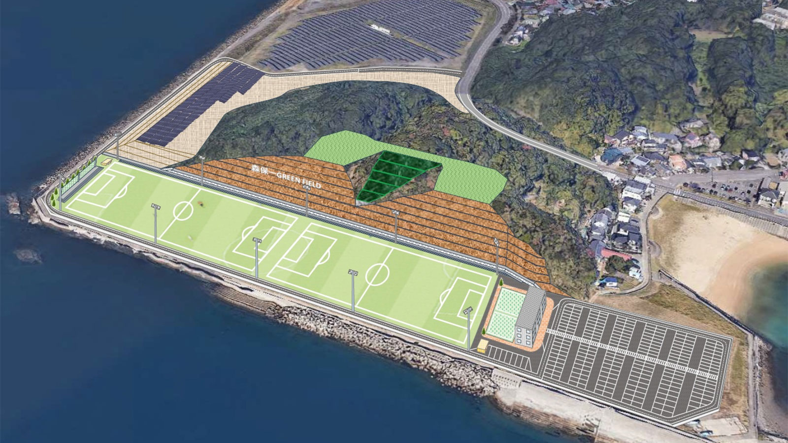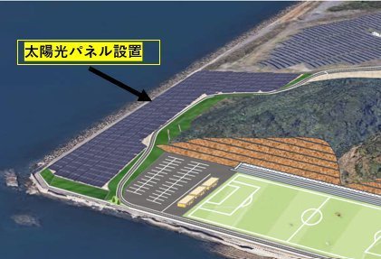 長崎市香焼町字竹崎1500-1他4筆 サッカー場2面及び太陽光発電を備えた施設を設置・建設します。地元の活性化となるように、さらには交流人口の拡大につなげます。